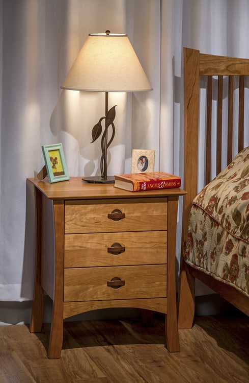 The Highgate Collection comes in American Black Cherry with natural finish. All items are coated with a highly durable formaldehyde free nitrocellulose lacquer. The Base Price is for the Highgate Three Drawer Nightstand with Natural Finish shown above. Prices may vary with additional options.