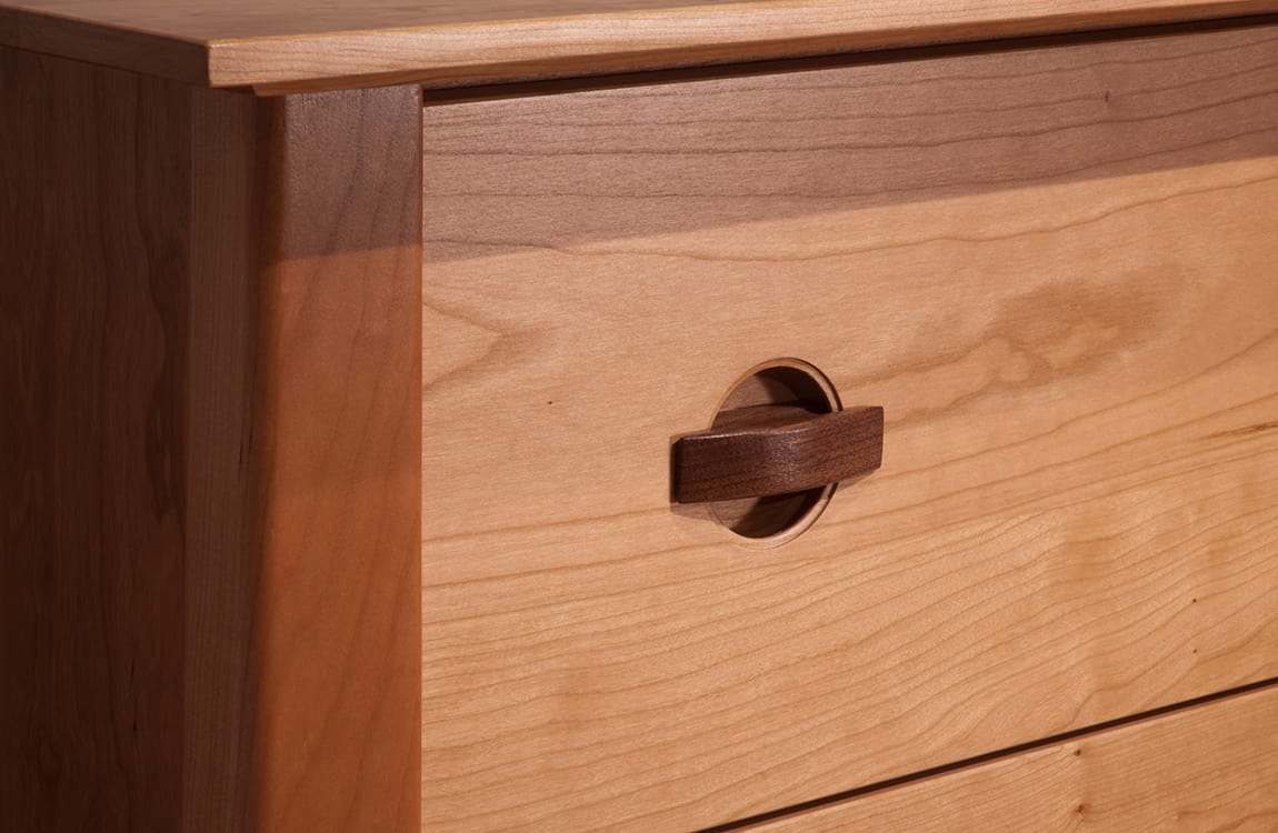 Solid American Black Cherry with Select Veneers in Natural Finish with Z899 Walnut Plunge Pulled Handles- 24”W x 20”D x 27”H.