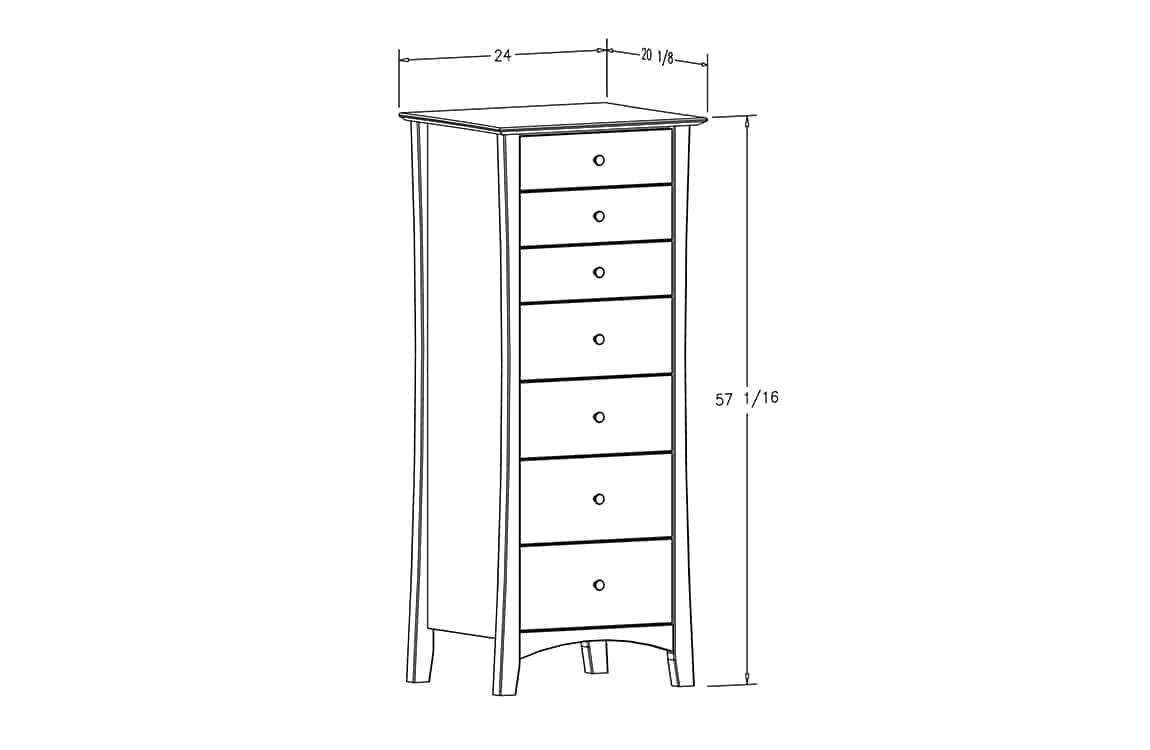 The Highgate Seven Drawer Lingerie Chest shown- 25”W x 20”D x 57”H.